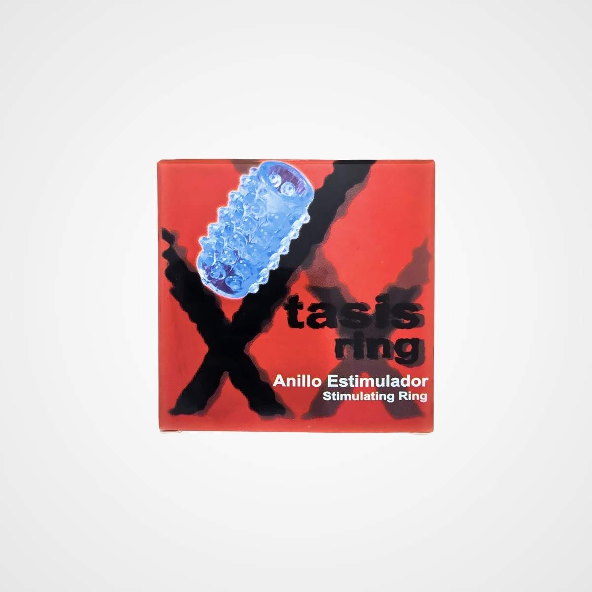 Xtasis Ring es un anillo de silicona con botones estimulantes en relieve, envasado para su venta en máquinas expendedoras.